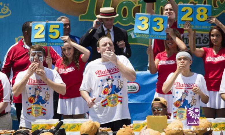 تلفزيون الفجر الجديد- شاب ينجح في تحطيم الرقم القياسي لعدد قطع الهوت دوغ التي يمكن أكلها في 10 دقائق بعد تناوله 69 قطعة.