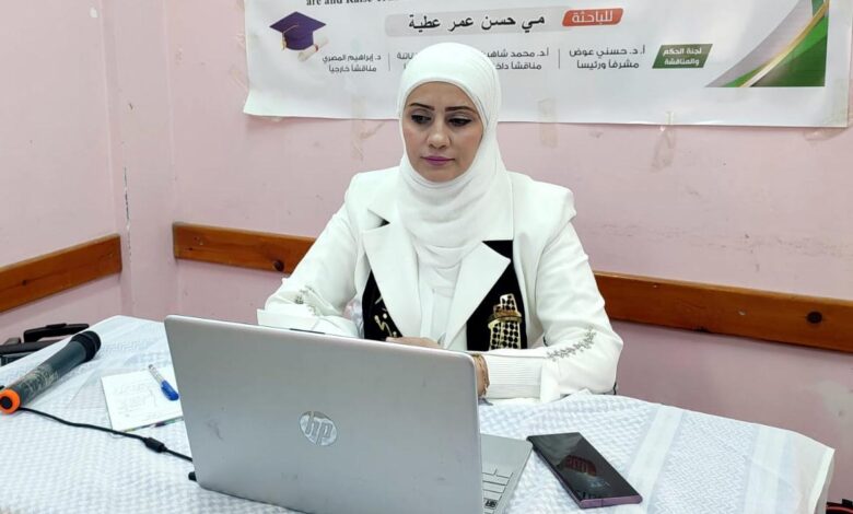 رغم 15 شهرًا من القصف والنزوح والدمار الذي طال كل مناحي الحياة في قطاع غزة، لم تستسلم الطالبة الدكتورة مي عطية للواقع الأليم، بل أصرت على مواصلة طريقها الأكاديمي حتى نالت درجة الدكتوراه من جامعة القدس المفتوحة.
