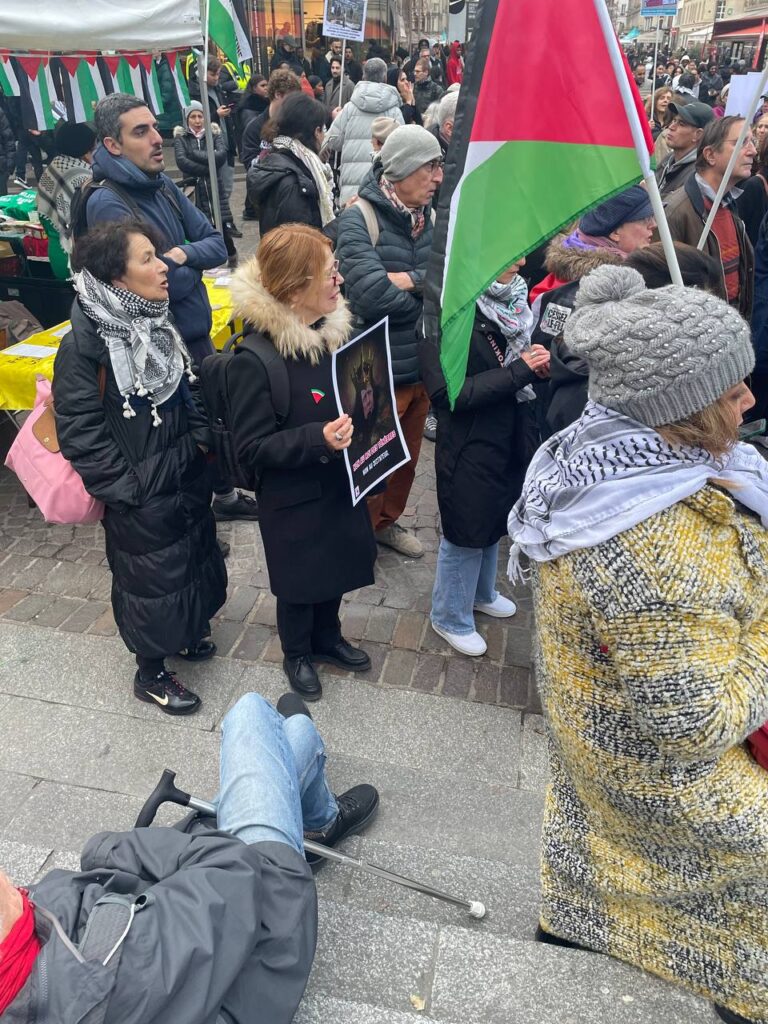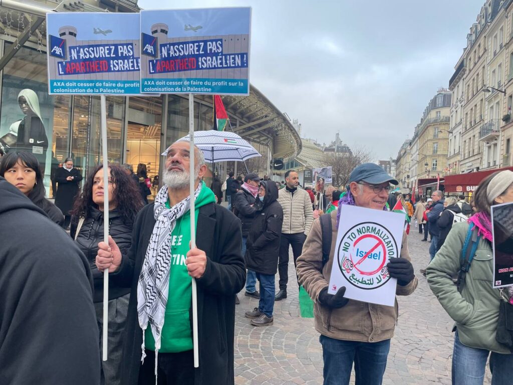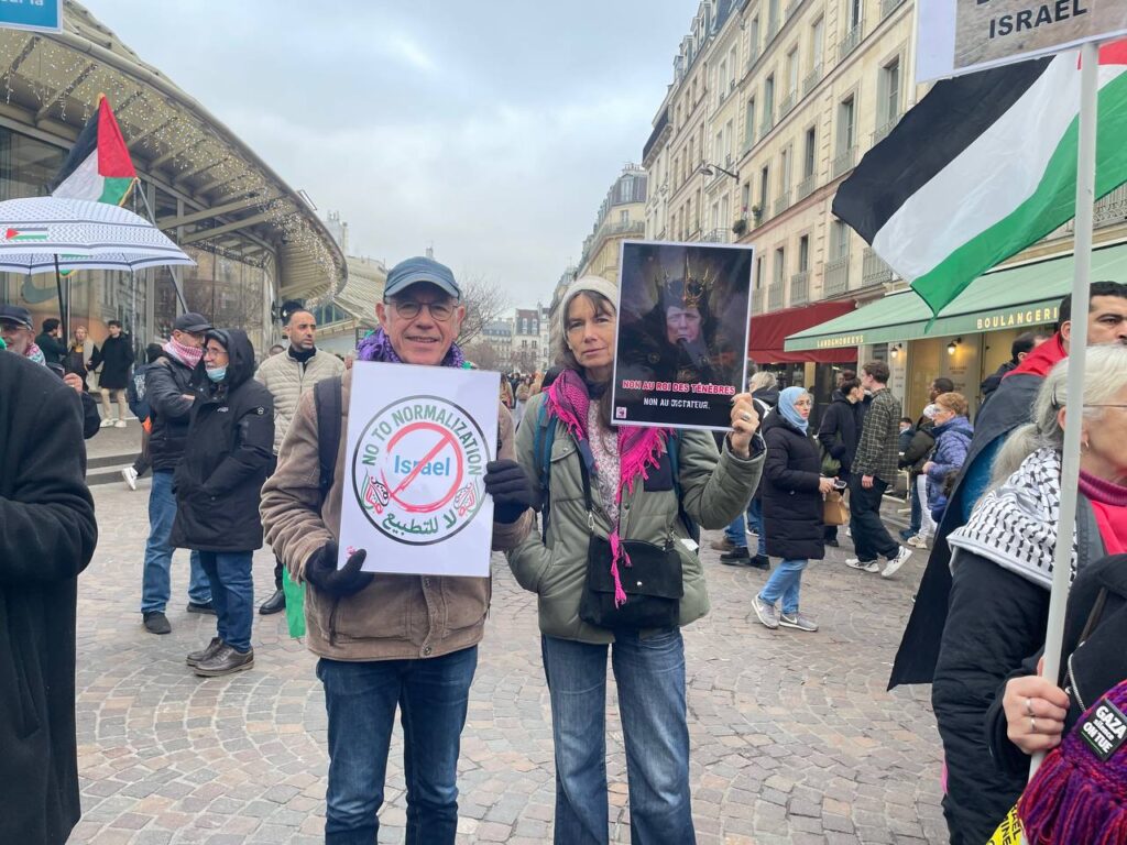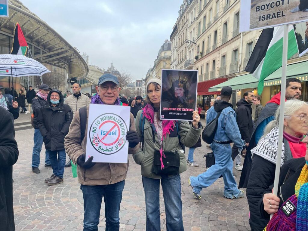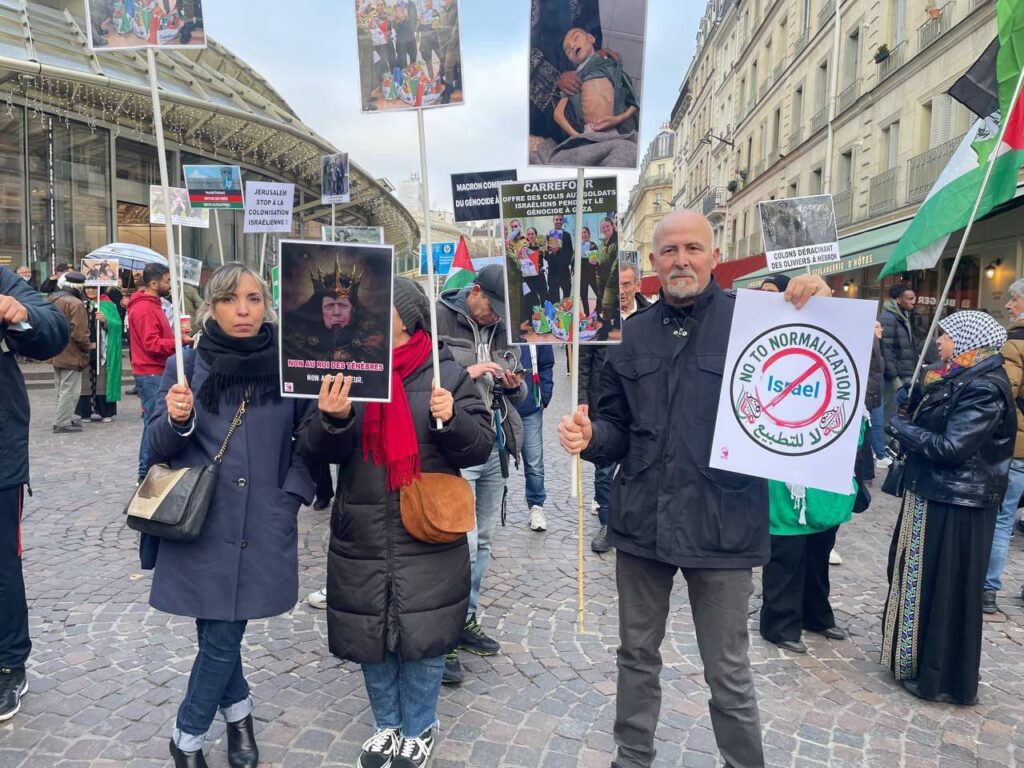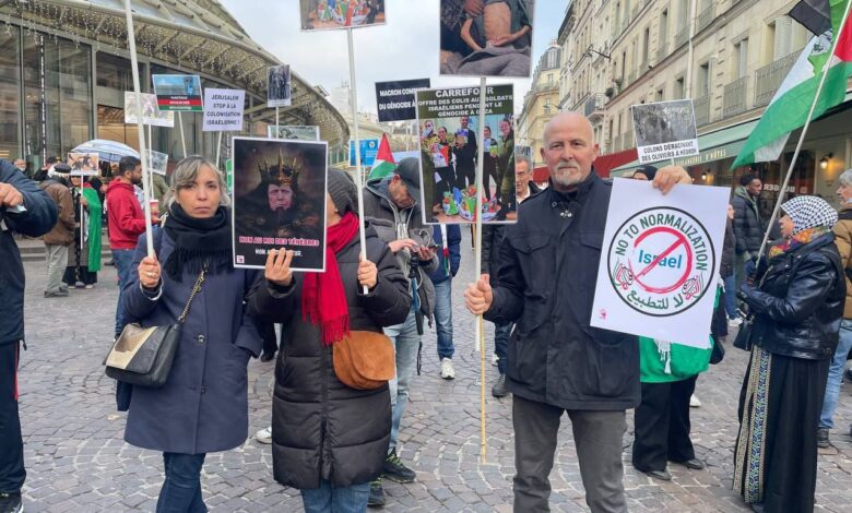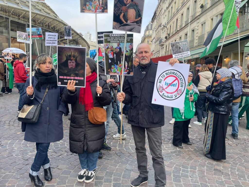 كما طالب المتظاهرون الذي نظمها مجموعات فرنسية وعربية بوقف سياسية التطبيع مع الكيان الصهيوني