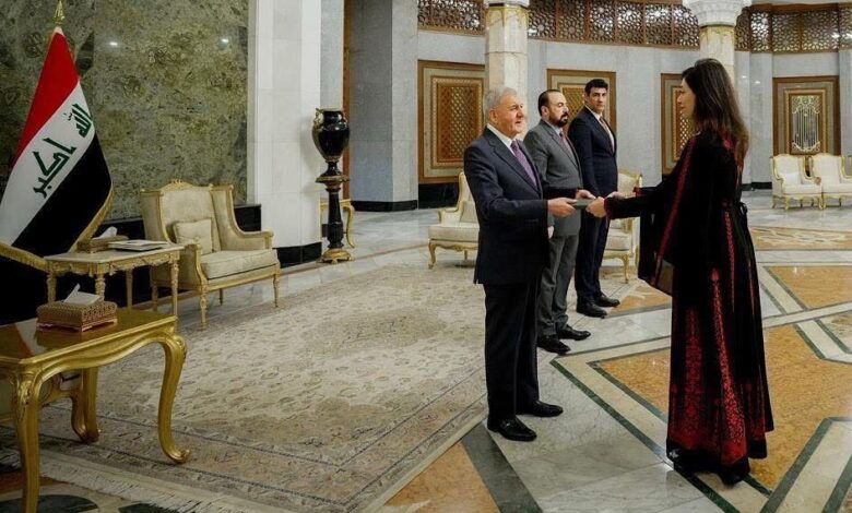 السفيرة عوض الله تقدم أوراق اعتمادها إلى رئيس جمهورية العراق