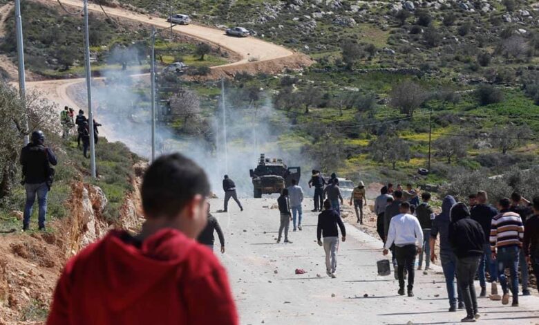 إصابات بأعيرة معدنية وحالات اختناق خلال مواجهات مع الاحتلال في جبل العرمة جنوب نابلس
