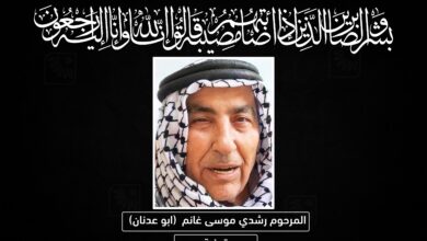 تعزية بوفاة المرحوم الحاج رشدي موسى غانم (ابوعدنان)