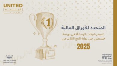 المتحدة للأوراق المالية تحافظ على ريادتها وتتصدر شركات الوساطة في بورصة فلسطين حتى نهاية الربع الثالث من العام 2025