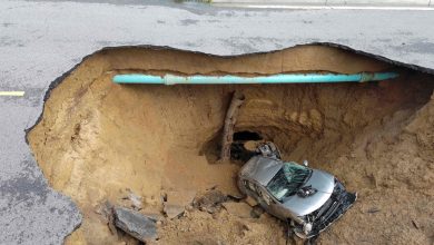 حفرة تبتلع سيارتين في كاليفورنيا.. فيديو