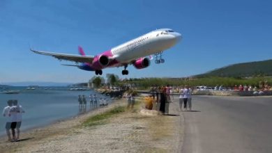 مشهد لا ينسى للقطات تحبس الأنفاس.. طائرة تهبط على بعد أمتار فوق رؤوس المصطافين