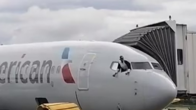 شاهد راكباً يقتحم قمرة طائرة أميركية.. ويقفز من النافذة