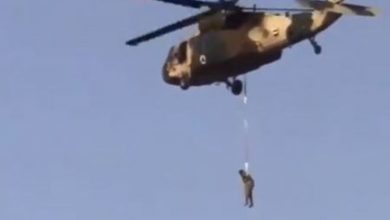 فيديو رهيب لرجل يتدلى من مروحية بأفغانستان