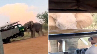 فيل غاضب يهاجم حافلة سياح