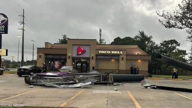 بالصور.. لافتة المطعم الضخمة كادت تسحق رأسها