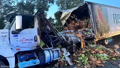 صور لاحتراق شاحنة موز.. وشجاعة السائق تحول دون وقوع إصابات