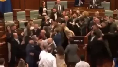 شاهد تدافعاً وتضارباً في برلمان كوسوفو.. والنساء ينلن حصتهن