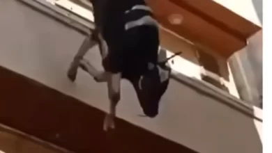 فيديو بشع لثور يقفز من الطابق الرابع في مصر