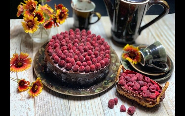 كيك الشوكولاتة الداكنة بالتوت الأحمر
