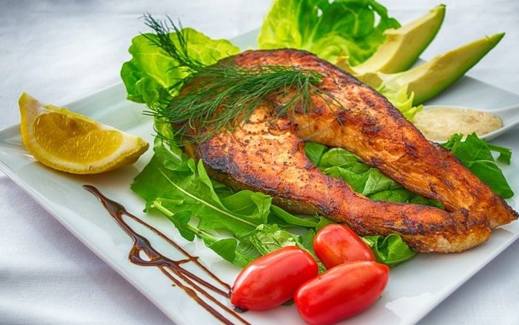 سمك سلمون مشوي مع الأعشاب للرجيم