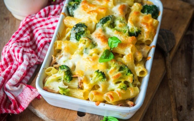 صينية مكرونة بالبروكلي والبشاميل