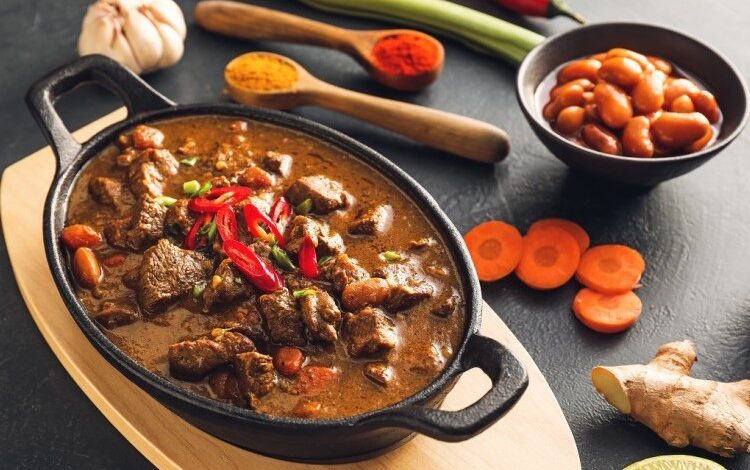 ايدام لحم وخضار في قدر الضغط
