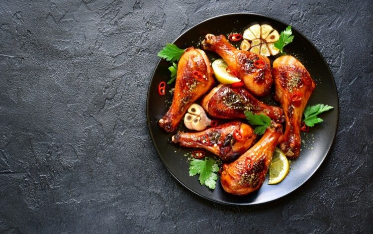 أفخاذ الدجاج المشوية بالثوم والصلصة الحارة