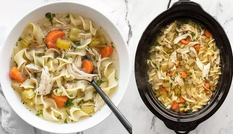 شوربة نودلز بالدجاج بقدر الطهي البطيء