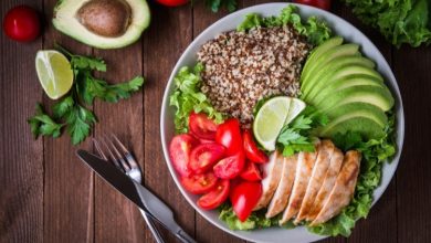 سلطة الكينوا بالدجاج والأفوكادو