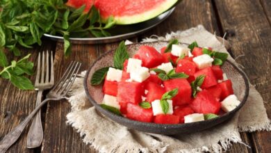 سلطة البطيخ مع الجبن الأبيض دايت