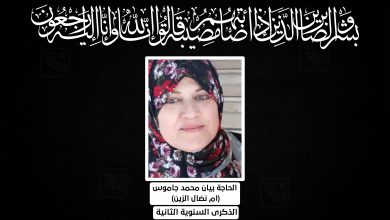 10 يوليو، 2025المرحومة بيان محمد جاموس (ام نضال الزين )