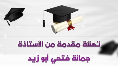 تهنئة من الأستاذة جمانة فتحي أبو زيد إلى طلبتها