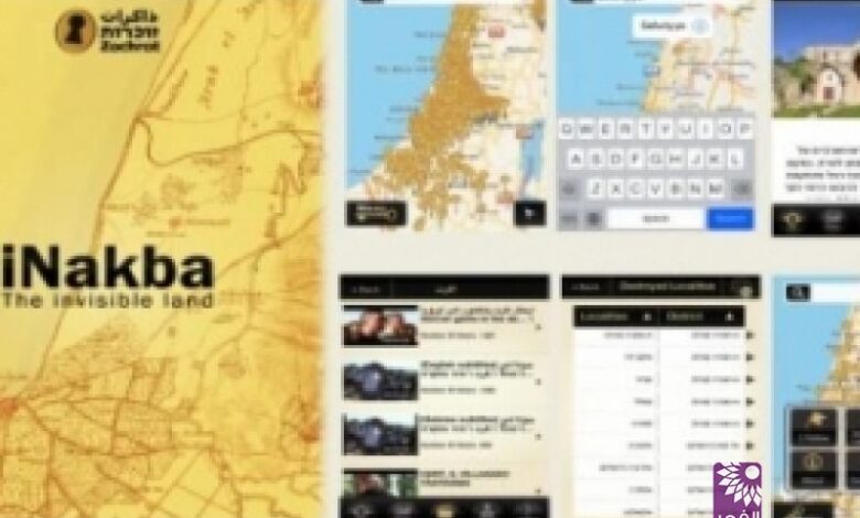 ويحتوي تطبيق "أي-نكبة" خارطة تفاعلية وصور المنازل والمباني التي تركها الفلسطينيون.