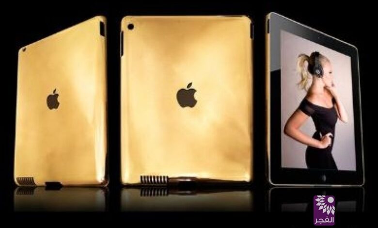 تلفزيون الفجر الجديد- عرضت شركة Goldgenie حواسب لوحية من شركة أبل من طراز iPad mini و iPad air بهيكل مصنوع من الذهب عيار 24 قيراطا.