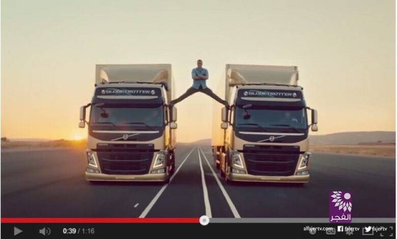 وتألق الممثل الشهير بأدوار البطولة في أفلام الحركة والقتال في إعلان لشركة فولفو، فقدّم مجازفة لم يسبقه إليها أحد.