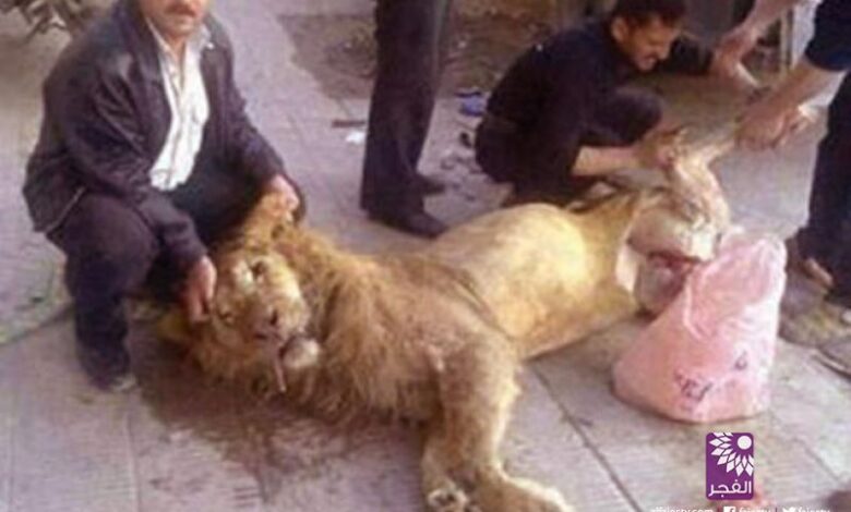 سوريون يذبحون “أسدًا” ويسلخونه بسبب الجوع!