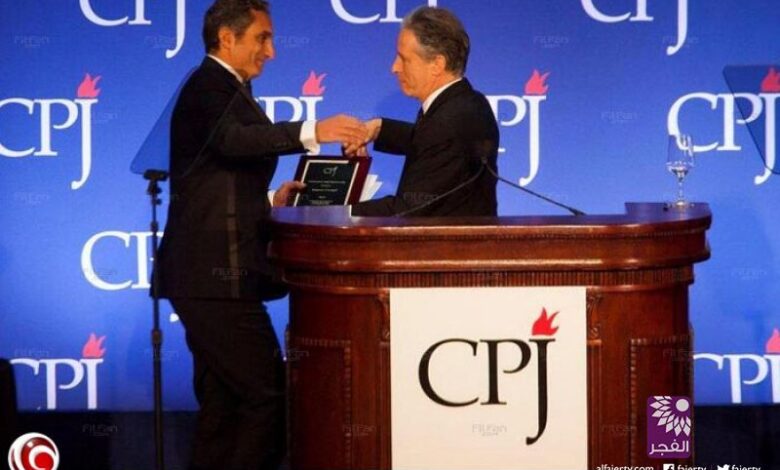 جون ستيوارت يقدم لباسم يوسف جائزة “حرية الصحافة”