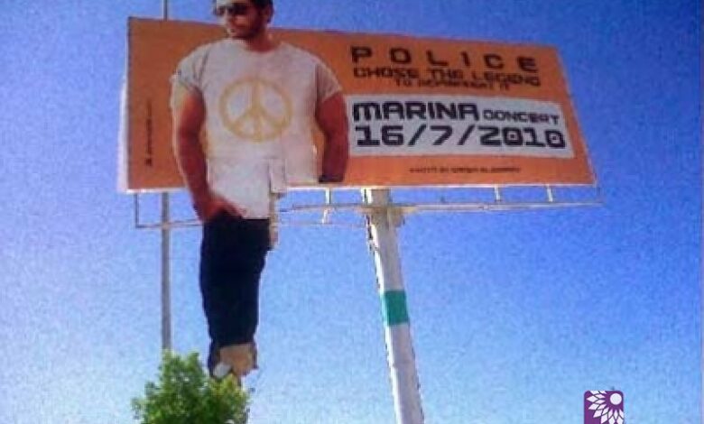 تحطيم لوحات إعلان نظارات بوليس وبيبسي لتامر حسنى بمارينا