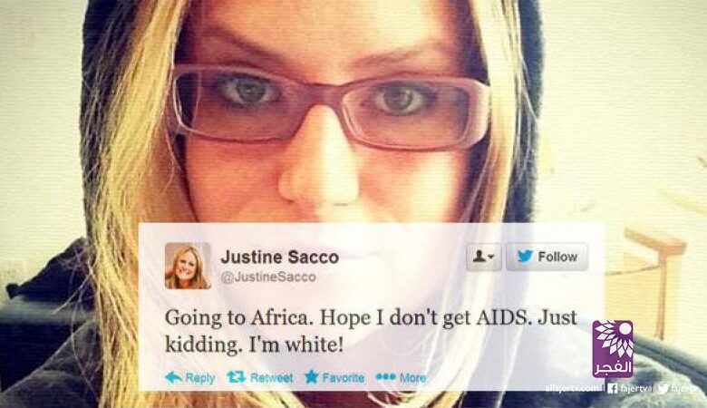 وكانت جاستن ساكو كتبت على تويتر "أنها ذاهبة إلى إفريقيا، متمنية ألا تلتقط مرض الإيدز من هناك"، قبل أن تحذف التغريدة فور وصولها إلى جنوب إفريقيا، لكن التداول الكبير والاستنكار الذي قوبلت به تغريدتها كان أسرع في حرمانها من منصبها، فيما أصدرت شركة "إنترآكتيف" بياناً أكدت من خلاله أن التغريدة الجارحة التي كتبتها جاستن لا تعبر عن رأي الشركة.