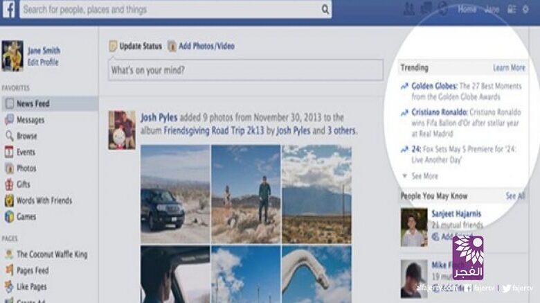 تلفزيون الفجر الجديد– أعلنت شركة "فيسبوك" عن إطلاق خدمة جديدة لمستخدميها تتمثل بإبراز قائمة بالمواضيع الأكثر شعبية، أو الأكثر تداولاً على الشبكة الإجتماعية حاليًا.