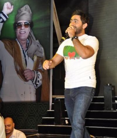 بالصور : تامر حسني يرتدي الزي الليبي في ثورة الفاتح ويؤذن للصلاة