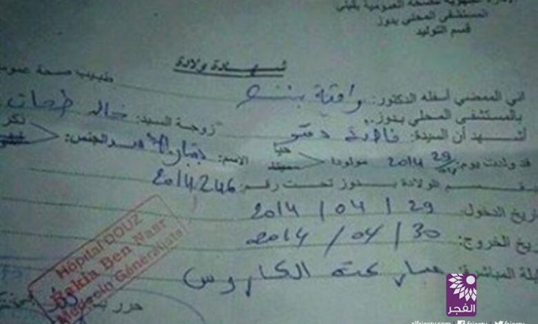تلفزيون الفجر الجديد– نشر ناشطون تونسيون على شبكات التواصل الاجتماعي صورة وثيقة ولادة تُظهر قيام أب تونسي يدعى خالد طحان، بإطلاق اسم الرئيس السوري وكنيته على ابنه المولود حديثا.