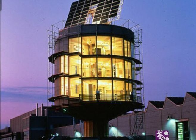 على الطاقة الشمسية بالكامل في العالم.هذا المنزل يدور حول نفسه عن طريق جهاز تحكم ، ففي الصباح يمكن أن يطل منزلك على البحر لتستمتع بمشهد شروق الشمس البديع، ثم يدور منزلك لتشاهد جمال الخضرة طوال اليوم حتى موعد الغروب، فتدير منزلك إلى جهة غروب الشمس لتستمتع بمشهد الغروب البديع!