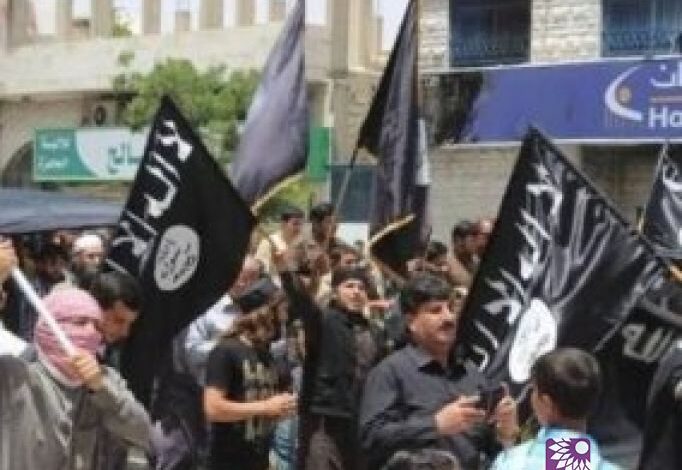 ورفع المشاركون في المسيرة رايات "داعش"، وسط هتافات تطالب بازالة حدود "سايكس بيكو" ، وتؤيد العمليات العسكرية لقوات 'داعش' في العراق، وسيطرتها على بعض المدن والقرى العراقية.