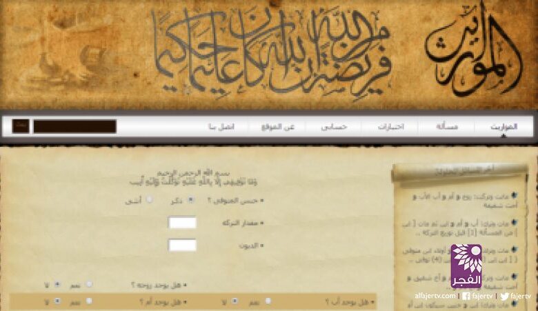 تلفزيون الفجر الجديد– أعلن القائمون على موقع "المواريث" اليوم عن إطلاقه رسمياً على شبكة الإنترنت رافعين شعاراً لافتاً مفاده "تقسيم مساءل الميراث وتعليمها برمجياً".