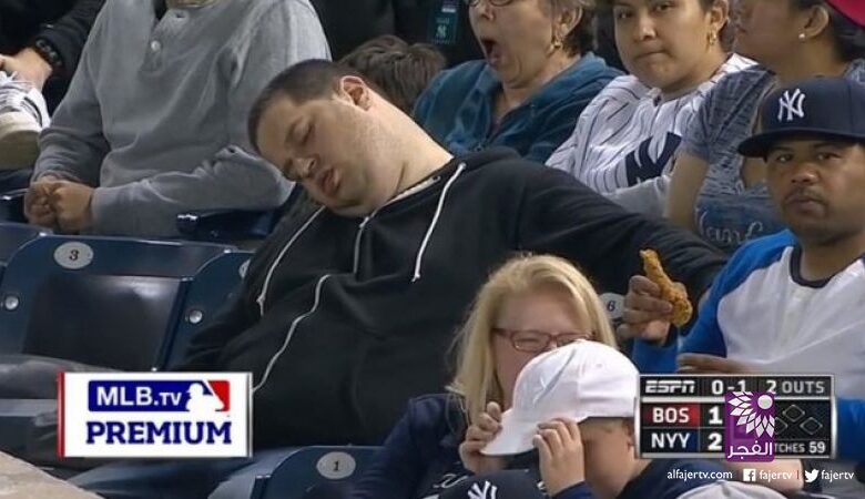 تلفزيون الفجر الجديد- تعرض أحد مشجعي فريق "اليانكيز" الأميركي لموقف محرج، حين غلبه النعاس أثناء مباراة لفريقه، ونقل مصورو التليفزيون صورته على الهواء مع تعليقات ساخرة من المعلقين.