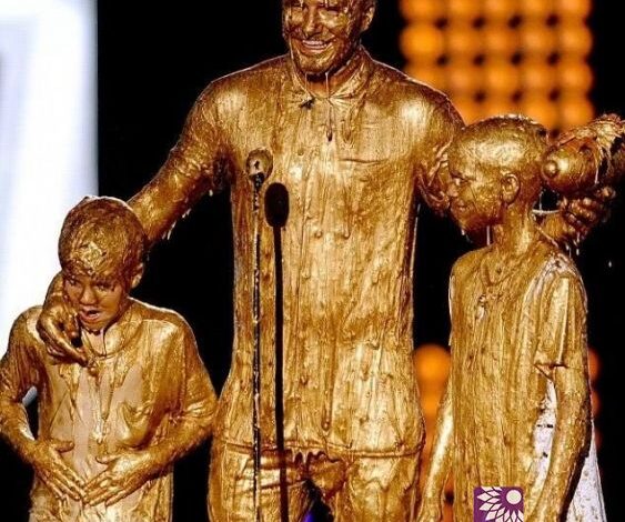 ديفيد بيكهام يتسلّم جائزة وهو مغطّى بالذهب مع طفليه