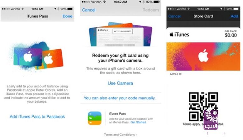وفي سياق متصل، أطلقت "آبل" مؤخراً ميزة "آيتونز باس" iTunes Pass التي تتيح للمستخدمين إعادة شحن حساباتهم الخاصة في "آيتونز" عن طريق تطبيق "باسبوك" Passbook الذي توفره الشركة مع أجهزتها المحمولة.