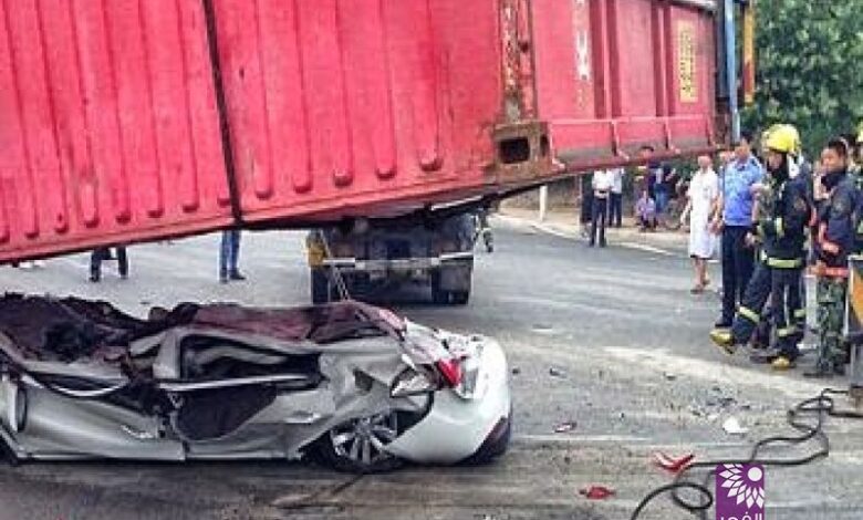 شاحنة تسحق سيارة ويخرج ركابها أحياءً