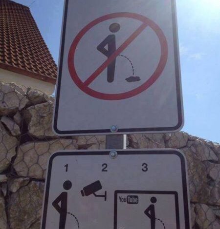 ولن يتم إلحاق أي غرامة مالية بحق من يتبول في الأماكن العامة لأن هذا وفقاً لمن نشر تلك الإشارة لن يمنع الناس من هذا التصرف ولن يكون كافياً، بينما سيكون فضحه على الإنترنت رادعاً قوياً وكافياً لتجنب تلك الأفعال.