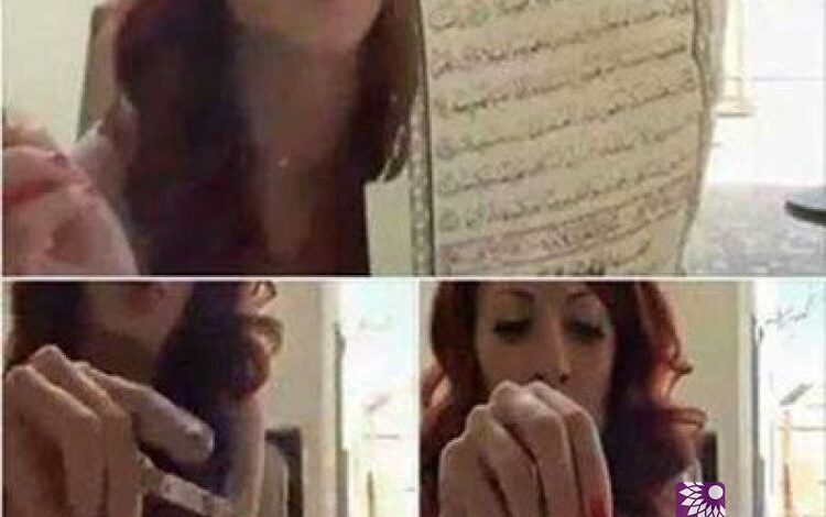 بالصور… قيادية سياسية تونسية تحرق القرآن الكريم بسيجارتها