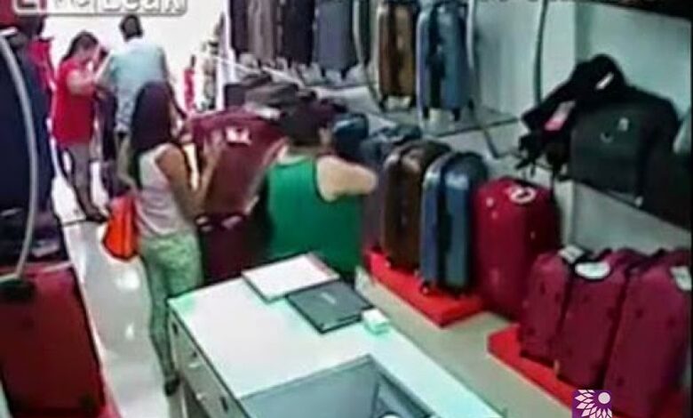 تلفزيون الفجر الجديد – تمكنت عصابة مكونة من 5 نساء من مغافلة اثنين من الموظفين داخل متجر للحقائب؛ لتقوم إحداهن بسرقة الإيراد بالكامل من داخل خزانة النقود.