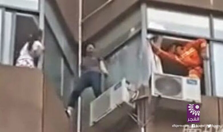 تلفزيون الفجر الجديد – تداول النشطاء على مواقع التواصل الاجتماعي مقطع فيديو يظهر فيه فتاة تحاول الانتحار من على أحد المباني، ولكن قام أحد أفراد الإنقاذ بالإمساك بها بطريقة مذهلة، وعندما أمسك بها كادت أن تسقط ولكن أمسك بها جيدا.