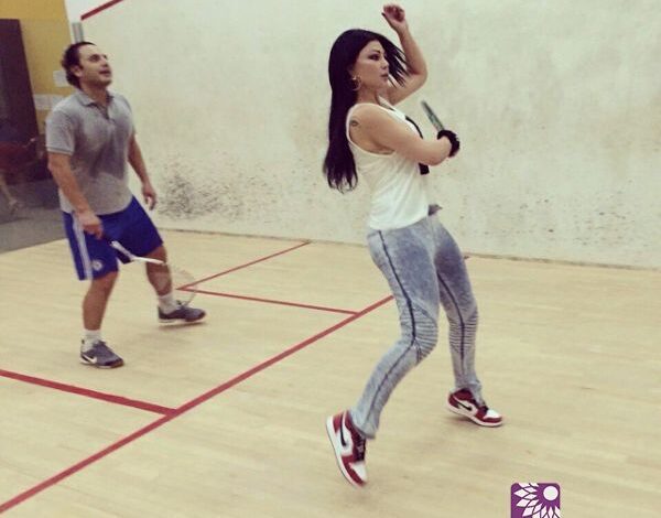 هيفاء وهبي تستعرض مواهبها في الاسكواش