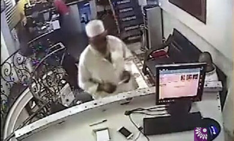 فيديو: ملتحي ستيني يسرق جوال وكاميرا المحل ترصده