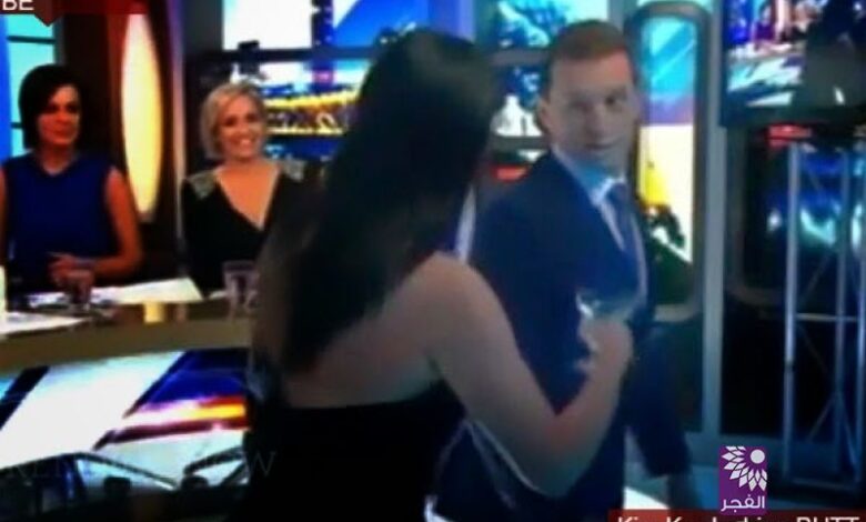 بالفيديو: كيم كاردشيان تعلم مذيع كيف يوازن كوبا على مؤخرته